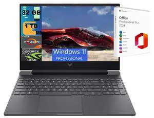 HP Victus 15 Gaming Laptop, 15.6" FHD 144 Hz, AMD Ryzen 7 7445HS 6 Cores Processor, GeForce RTX 4050 8GB GDDR6 Graphics, 32GB DDR5 1 TB PCIe SSD, Backlit KB, Windows 11 Pro,Office 2024 License