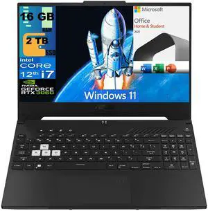 ASUS TUF Dash 15 Gaming Laptop, 15.6" 144Hz FHD Display, Intel Core i7-12650H 10 cores Processor, RTX 3060 6GB GDDR6, 16GB DDR5  2TB PCIe SSD, Backlit KB, Windows 11,Microsoft Office License