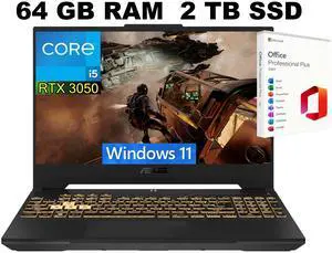 ASUS TUF F15 Gaming Laptop, 15.6" FHD 144Hz Display, Intel Core i5-12500H 12-Core Processor, GeForce RTX 3050 6 GB GDDR6, 64GB DDR4 1TB PCIe SSD, Wi-Fi 6, Windows 11 Pro ,Office 2021 License