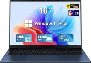 FUNYET Gaming Laptop, 16 Inch Laptop Computer with Win 11 Pro, 12th Gen N150 Processor(up to 3.6GHz), 16GB RAM 512GB SSD, Backlit Keyboard, Bluetooth, FHD 1920 * 1200. Dark Blue