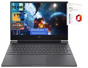 HP Victus 15 Gaming Laptop, 15.6" FHD 144Hz Display, AMD Ryzen 5 7535HS 6 cores Processor, AMD Radeon RX 6550M, 32GB DDR5 1 TB PCIe SSD, Backlit Keyboard, Windows 11 Pro ,Office 2024 License