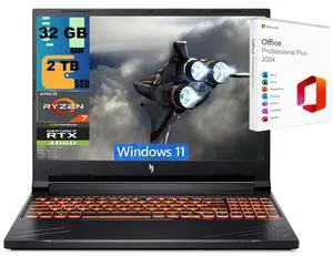 Acer Nitro V 16 Gaming Laptop, 16" 165Hz WUXGA Display, AMD Ryzen 7 8845HS 8-Core Processor, NVIDIA GeForce RTX 4060 8GB GDDR6, 32GB DDR5  2TB PCIe SSD, Wi-Fi 6, Windows 11 ,Office 2024 License