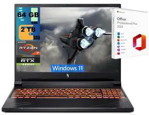 Acer Nitro V 16 Gaming Laptop, 16" 165Hz WUXGA Display, AMD Ryzen 7 8845HS 8-Core Processor, NVIDIA GeForce RTX 4060 8GB GDDR6, 64GB DDR5  2TB PCIe SSD, Wi-Fi 6, Windows 11 ,Office 2024 License