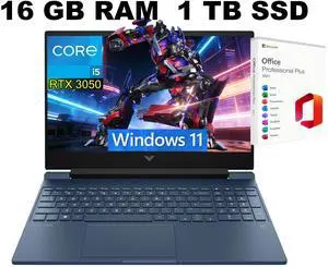 HP Victus 15.6 i5 Premium Gaming Laptop, 15.6" FHD 144Hz, Intel Core i5-12450H, NVIDIA GeForce RTX 3050, 16GB RAM, 1TB SSD, Backlit KB, Touchpad, Webcam, SD Card Reader, HDMI, Wi-Fi 6, W11 P, Blue- GPU/VPU: NVIDIA GeForce RTX 3050