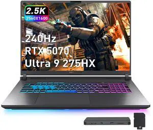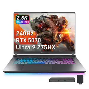 ASUS ROG Strix G18 18" WQXGA 240Hz Gaming Laptop, Intel Ultra 9 275HX, NVIDIA RTX 5070 8GB GDDR7, 16GB DDR5, 2TB Storage(1TB SSD+1TB Docking Station Set), RGB Backlit Keyboard, Win 11 Pro, Gray