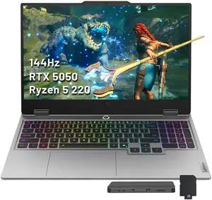 Lenovo LOQ 15.6" FHD 144Hz Gaming Laptop, AMD Ryzen 5 220, GeForce RTX 5050, 16GB DDR5, 1.5TB Storage (512GB SSD+1TB Docking Station Set), Backlit Keyboard, Numeric Pad, Win 11 Pro, Gray