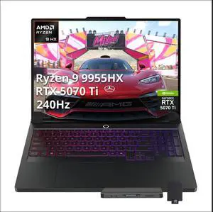 Lenovo Legion Pro 7 16" WQXGA 240Hz Gaming Laptop, Ryzen 9 9955HX, GeForce RTX 5070 Ti, 16GB DDR5, 2TB Storage(1TB SSD+1TB Docking Station), RGB Backlit Keyboard, Numeric Pad, Win 11, Black