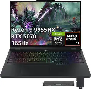 Lenovo Legion Pro 5 16" WQXGA 165Hz Gaming Laptop, AMD Ryzen 9 9955HX, GeForce RTX 5070, 32GB DDR5, 2TB Storage(1TB SSD+1TB Docking Station Set), RGB Backlit Keyboard, Numeric Pad, Win 11 Pro, Black