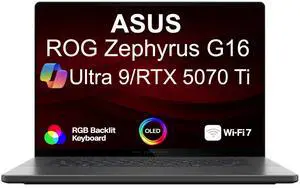 ASUS ROG Zephyrus G16 AI Gaming Laptop 16.0" 240Hz OLED WQXGA Display (Intel Ultra 9-285H, NVIDIA GeForce RTX 5070 Ti 12GB, 32GB LPDDR5X, 1TB SSD, RGB KB, Thunderbolt 4, WiFi 7, Webcam, Win 11 Home)