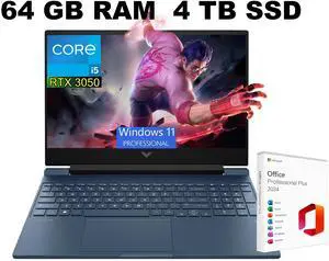 HP Victus 15 Gaming Laptop, 15.6" FHD 144Hz Display, Intel Core i5-12450H 8 Cores Processor, GeForce RTX 3050 4 GB GDDR6, Backlit KB, 64GB DDR4 4TB PCIe SSD, Windows 11 Pro, Office 2021 License