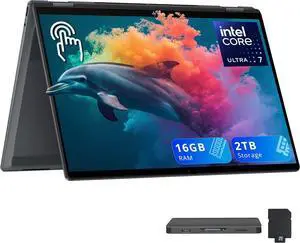 Lenovo Yoga 7i 16" 2K 2-in-1 Touchscreen Laptop, Intel Ultra 7 256V, 16GB RAM, 2TB Storage(1TB SSD+1TB Docking Station), Backlit Keyboard, Numeric Pad, Fingerprint Reader, Win 11 Pro, Gray