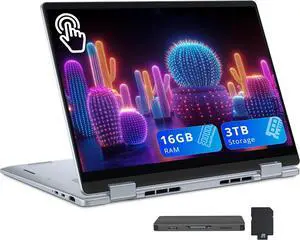 Dell Inspiron 14" 2K 2-in-1 Touchscreen Laptop, AMD Ryzen 5 8640HS, 16GB DDR5, 672GB Storage (512GB SSD+160GB Docking Station Set), Backlit Keyboard, Fingerprint Reader, Win 11, Ice Blue