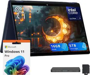 HP OmniBook X Flip 2-in-1 14" 2K Touchscreen Laptop, Intel Ultra 7 256V, 16GB DDR5, 5TB Storage(4TB SSD+1TB Docking Station Set), Intel Arc 140V, Backlit Keyboard, Copilot, Win 11 Pro, Blue