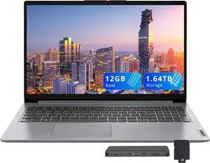 Lenovo IdeaPad 1 15.6" HD Laptop, Intel Celeron N4500, 12GB RAM, 512GB SSD+128GB eMMC, Intel UHD Graphics, WiFi 6, Num Pad, SD Card Reader, HDMI, Win 11, Abyss Blue, 160GB Docking Station Set- Operating System: ?Windows 11 Home