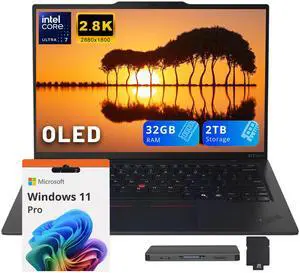 Lenovo ThinkPad X1 Carbon Gen 13 14" 2.8K OLED Laptop, Intel Ultra 7 258V, 32GB DDR5, 2TB Storage(1TB SSD+1TB Docking Station Set), Backlit Keyboard, Fingerprint Reader, Win 11 Pro, Black
