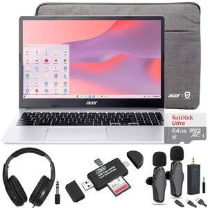 Acer Chromebook 315 15.6" Laptop Intel N4500 4GB 64GB eMMC Pure Silver + Samson SR350 Headphones + VidPro Wireless Mic + 64GB SD