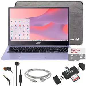 Acer Chromebook 315 15.6" Laptop Intel N4500 4GB 64GB eMMC Moonstone Purple + JBL T110 Earphones + 10ft USB Cable + 64GB SD