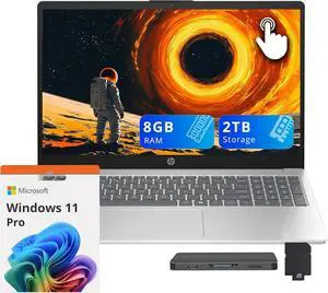 HP 15.6" FHD Laptop, AMD Ryzen 5-5500U Processor, 16GB RAM, 512GB PCIe SSD, AMD Radeon Graphics, HD Webcam, Wi-fi, Bluetooth, Win 11, Silver, 32GB Hotface USB Card- WLAN: 802.11ac Wireless LAN