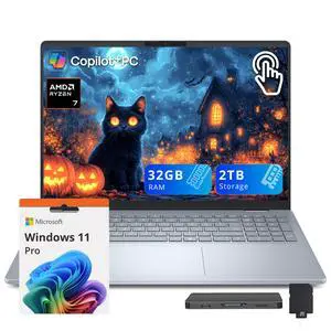 Dell 16 16'' FHD+ Touchscreen Laptop, AMD Ryzen 7 250, 32GB RAM, 2TB Storage(1TB SSD+1TB Docking Station Set), AMD Radeon Graphics, Backlit Keyboard, Numeric Pad, Windows 11 Pro, Black