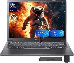 Acer Aspire 14" WUXGA IPS Touchscreen Laptop, Intel Ultra 7 258V, 32GB RAM, 5TB Storage(4TB SSD + 1TB Docking Station Set), Intel ARC 140V, Backlit Keyboard, Windows 11 Home, Gray