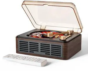 CD Player with Speakers Bluetooth Nostalgic Retro Portable CD Players for Home Wood Music Player FM Radio for HomeWired and Remote Control-Walnut Brown