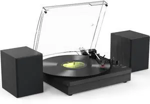 MYKESONIC Fully Automatic Record Player, Bluetooth Belt Drive Vinyl Turntable, Magnetic AT-3600L Cartridge, Bluetooth in & Out, Hi-Fi Stereo Speakers, Aux in Headphone, RCA Out, Anti-Resonance - Black