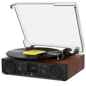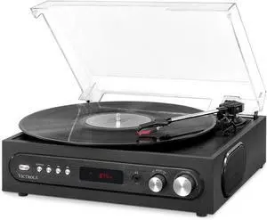 3-in-1 Turntable 3-Speed (33 1/3, 45, 78 RPM) Bluetooth Record Player with FM Radio, & Built-In Stereo Speakers, 3.5 Aux In & RCA Output, Wireless Music Streaming, Dust Cover (Black)