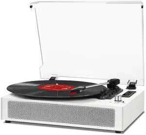 Vinyl Records Player Bluetooth with Bulit-in Speaker Vintage Record Player with USB Recording EQ Mode Support Belt-Driven 3-Speed Turntable AUX-in RCA Out, White
