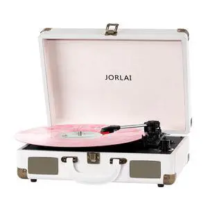 Vintage Pink Suitcase Record Player - 3-Speed Turntable with Bluetooth, USB Recording, MP3 Converter, Speakers, Stylus