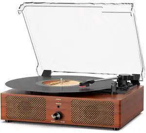 Vintage Wooden Record Player with Bluetooth 3-Speed Belt-Driven Turntable Built-in Speakers, Beginner Friendly Retro Phonograph for Home Decor, for Vinyl Enthusiasts (Walnut Finish)