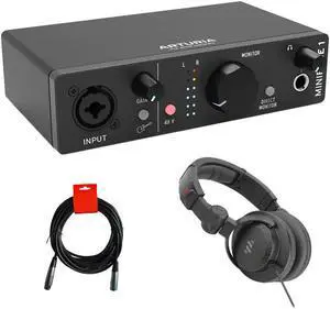Arturia MiniFuse 1 Portable Solo USB Type-C Audio Interface (Black) Bundle with Studio Pro Monitor Headphones and XLR-XLR Cable