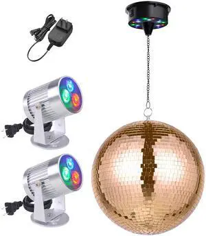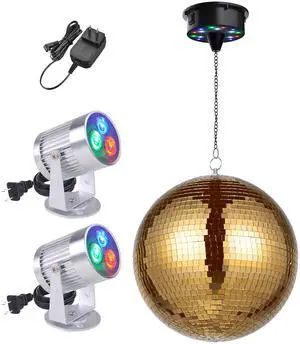 Yescom 16 Large Disco Mirror Ball 2 RGB Spotlights Rotating Motor Kit Party Club