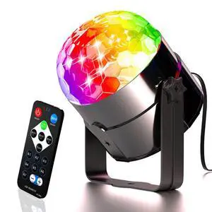 Disco Party Light, Strobe DJ Ball Light with Music Sound Activated Remote Control, LED Stage Lights for Rave Dance Party Christmas Decoration Halloween New Years Eve Birthday in Karaoke Home, 1 Pack