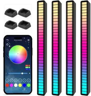 RGB Rechargeable Sound Control Light, Voice-Activated Pickup Music Rhythm Lights, Creative Colorful LED Ambient Light, with 15 Modes Music Sync 32-Bit Audio Spectrum for Car4 Pack-App