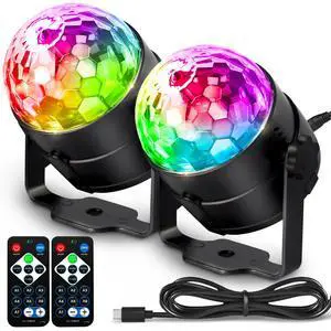 Disco Ball DJ Party Lights Sound Activated with Remote Control Strobe Lamp 7 Modes Stage Light for Home Room Dance Parties Karaoke Halloween Christmas Birthday Decorations,2pack