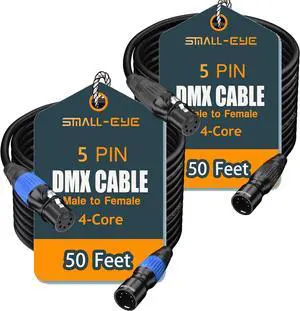 SMALL-EYE 5 Pin DMX Cable 50 ft 2-Pack 4-Core Male to Female Stage Lighting Cable for DMX512 Controller, Multi-Color Coded (50')
