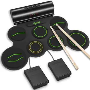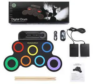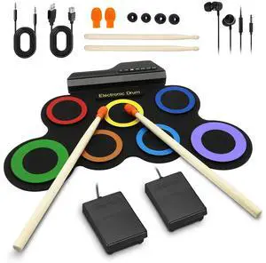 Electric Drum Set, 7-Pad Electronic Drum Set with Headphone Included, Roll-up Drum Pad For Kids, Great Holiday Xmas Birthday Gift (Dual Speakers)Brand: AlesisPart Number: 7padSet Include: drum pad, drumsticks, power cable, audio cable, headphone, manual, PedalsSpecification: drum pad, drumsticks, power cable, audio cable, headphone, manual, Pedals, 1.69 pounds, 7.570638095238096 L x 15.494 W x 43.12875238095238 H centimeters, Bass Wood, 5-9 yrs oldModel #: 916829667252