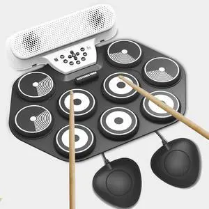 Electronic Drum Set 9 Pad, Portable Roll Up Drum Kit with USB MIDI & Bluetooth, Built-in Speakers, Foot Pedals, Rechargeable Battery, Compact Practice Drum Pad for Beginners & Adult MusiciansBrand: AlesisSeries: Electronic Drum PadPart Number: Electronic Drum Pad 1Specification: 1 pounds, 10 L x 4 W x 2 H inches, 10.4902 L x 15.5956 W x 40.4114 H centimeters, Silicone, White, Electronic Drum PadModel #: 306649421965