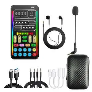 i9 Real-Time Voice Changer with Sound Card 8 Voice Effects, Full Accessories Included (Mini Mic, Monitor Earphone, 2 Adapters), Plug & Play, Compatible with PC, PS5, Xbox, Switch, Android & iOS