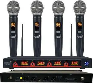 Church UHF Wireless Microphone Reciver System 4 Channel Handheld Karaoke Microphones Audio Studio Church Mic UHF Cordless Dynamic Mic SMU-4002A