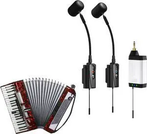 Dual UHF Accordion Wireless Microphone, Gooseneck Instrument Pick Up Mic with 2 Transmitters and 1 Receiver for Accordion, PA Systems, Audio Mixers, Speakers, Q2/at-5