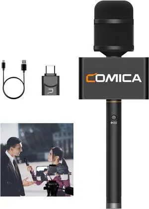 COMICA Revo S Wireless Reporter Microphone Compatible with Windows, Mac OS, Support One-Key Denoise with 14mm Condenser Mic Capsule for Smartphone for Podcasting, Report, Interview, Video Recording