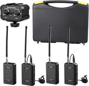 Saramonic Wireless VHF Lavalier Microphone Bundle with 2 Bodypack Transmitters, 2 Receivers, and 2-Ch Mixer for DSLR Cameras, Camcorders + More - 200' Wireless Transmission Range (Black, Black)