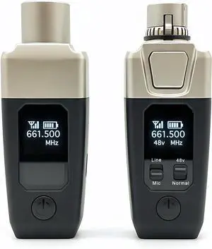 UHF Wireless XLR 1 Transmitter and 2 Receivers with Dual Antennas, 470ft Range, Auto Channel Scanning, Plug-on Wireless Mic Adapter for Audio Mixer, Sound Field Test, Acoustic Measurement