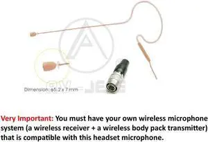 Mini Beige Color Earhook Microphone_Hirose Locking Mini 4 Pin Connector HRS_for Audio-Techncia Wireless Systems