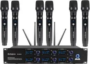 Berlingtone) 6-Channel UHF Wireless Microphone System Cordless Mic with Metal Handheld, Fixed Frequency Channel, Dynamic Microphone for Karaoke, Church, Singing, DJ, 262ft Range (BR-600UM)