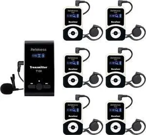 Retekess T130 Tour Guide Headsets System, Whisper Device, Classic Style, Easy to Use, Tour Guide Microphone for Church, Court, Conference (1 Transmitter 6 Receivers)