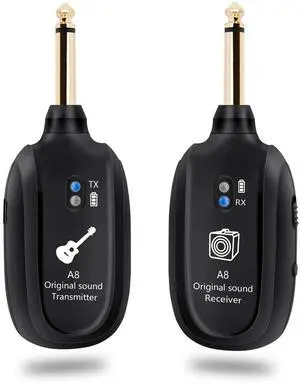 A8 Wireless Guitar Transmitter Receiver System - 2.4GHz Rechargeable, 24-bit/48KHz Audio, Low Latency <4ms for Electric Guitar & Bass - Clean Wireless Audio for MUSIC and BASS GUITARS