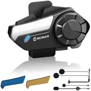 Moman Motorcycle Intercom, H2SH2PRO Upgrade Motorbike Helmet Speaker 2-Way 1000M Communication Headset with Triple Noise Cancellation/Audio Multitasking/Hi-Fi/Music Sharing/FM/AI Voice, 1 Pack