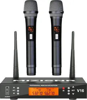 Professional Dual Dynamic Handheld Wireless Microphones, 328ft Range UHF Wireless Microphone System for Home Karaoke/Meeting/Party/Church/Wedding